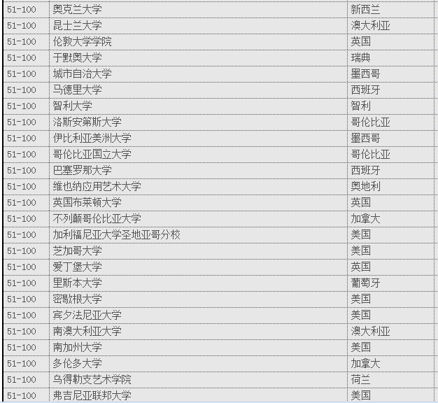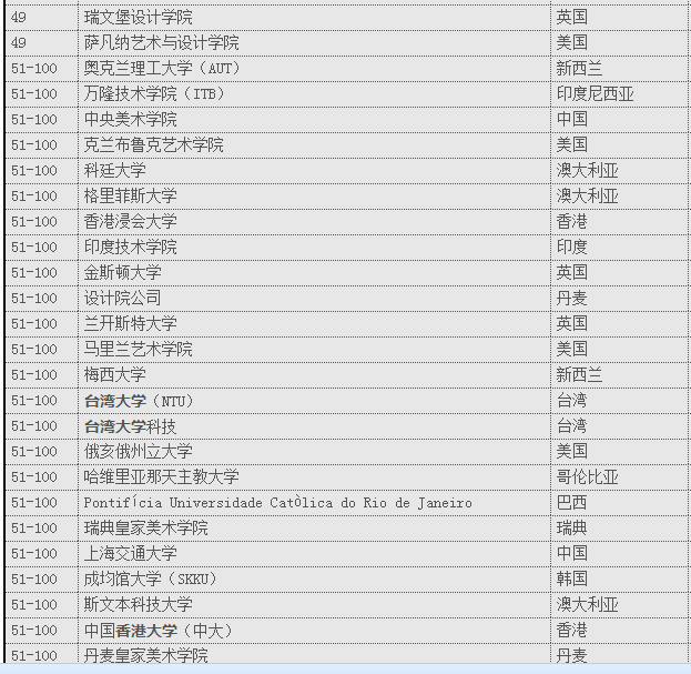 这份排名是QS官网统计出来的,从学术水平、师资力量、学校环境等很多方面综合选评,希望给喜欢艺术的你,作为一个参考!