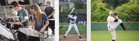棒球、篮球、拉拉队、曲棍球、足球、高尔夫、垒 球、游泳、网球、田径、排球、摔跤等。