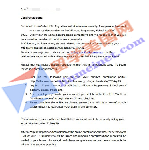 录取捷报 | 恭喜留美网YH同学斩获美国寄宿高中维拉诺瓦高中Villanova Preparatory School的录取offer~