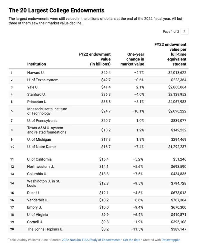 2022年斯坦福大学捐赠基金规模是363亿美元,位列第四。