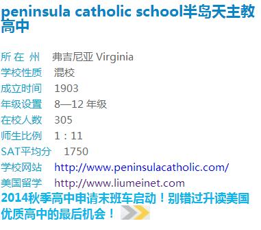 半岛中学位于弗吉尼亚,该地区安全指数高,学校的学术氛围好,有不少学生进入全美最顶级的大学。该校对于学生的个体关注度高,定期提供全方位的学习指导讲座,包括学习技巧、心理调适和考试准备等。学校还开设SAT的课程,提高学生的竞争力。有不错的住家。