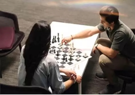 (课下一起下棋,是霍特校园里教授与学生之间的一项传统。)