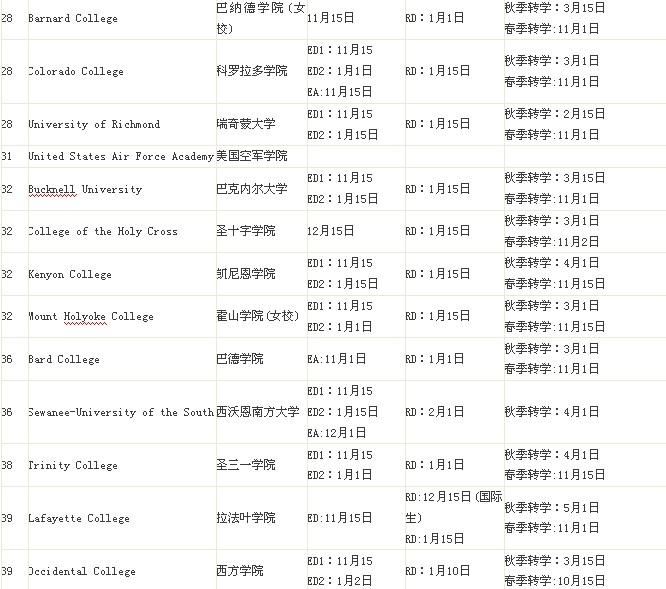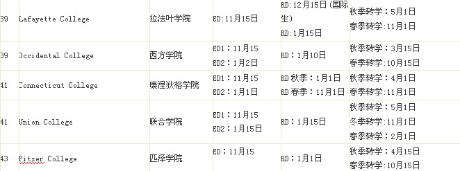 TOP50美国文理学院申请截止时间
