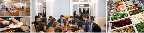学生在罗马诺餐厅(Romano Dining Hall)享用早餐、午餐和晚餐,这里提供丰富的健康选择,包括丰盛的沙拉吧、热食家常主菜、自制汤和酱汁、各种熟食选择以及新鲜出炉的面包和面包。甜点。