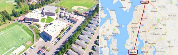 学校位于华盛顿州的埃弗雷特郡,拥有美国西海岸典型的温和湿润气候,离西雅图仅30分钟车程。这里经济发达,人口富裕。作为美国重要的港口城市,其开放多元的氛围使之更具国际视野。这里聚集了很多世界知名公司总部,包括星巴克总部,波音公司总部以及其拥有的世界楼层面积最大的建筑所在地,新型787梦幻客机就是在这里铸造的。