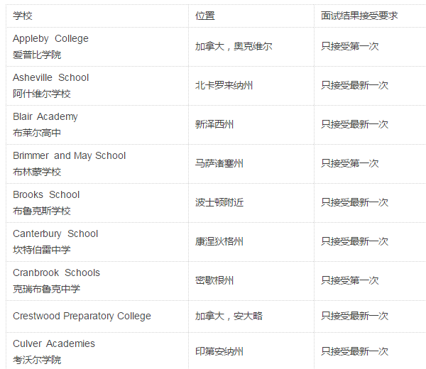 目前有90所美国高中要求必须提交维立克面试结果,并且有些只接受第一次的结果(每位考生最多可以参加三次,每两次至少间隔30天),只接受第一次维立克面试的美国高中,又新增了4所学校: