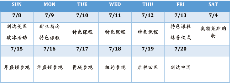 7. 住宿地点:上课期间学校宿舍, 旅游期间三星级酒店