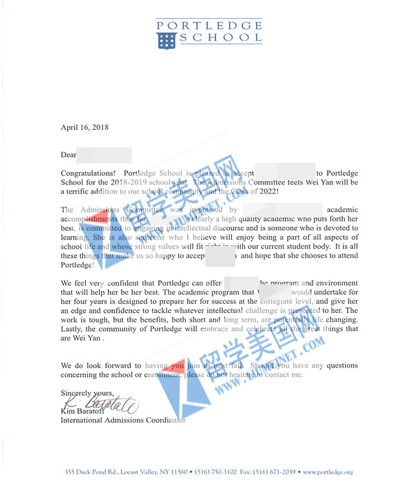恭喜Z同学成功补录到顶尖走读 portledge School!纽约州顶尖走读,全美排名186(共3497所学校)目前美国前三十的寄宿学校还有名额,申请热线:400-000-7805,010-65183908,微信:liumeinet2014