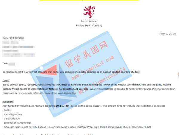 恭喜留学美国网Z同学获得Phillips Exeter Academy夏校offer