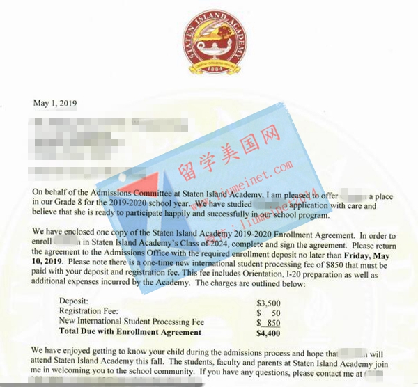 每一个offer,背后都站着一群人——学生、家长、留学美国网的各位老师。每一份申请背后,都是大家在努力的付出。正如X同学获得斯塔顿岛学院(Staten Island Academy)offer一样,这份offer,也同样令人难以忘怀。
