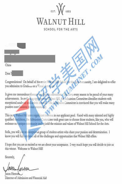 恭喜留学美国网的Z同学被胡桃山艺术高中Walnut Hill School Of The Arts录取,祝愿她在新的学校里生活和学习愉快。