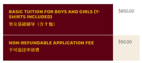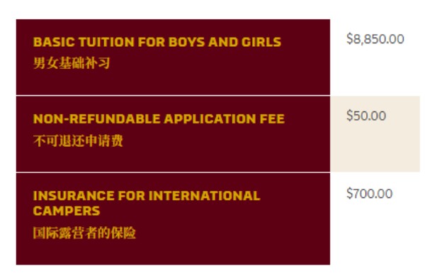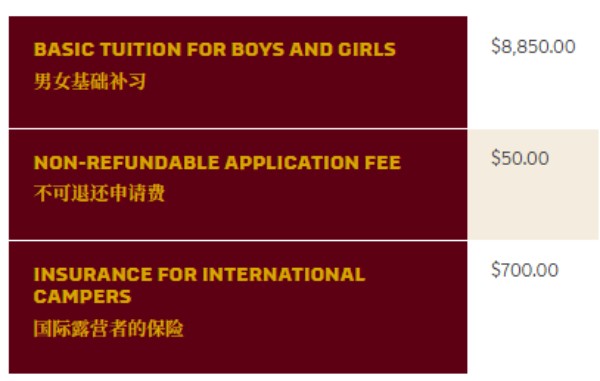 注:新营员还需额外购买校服。制服的平均费用在850美元到1450美元之间,具体取决于孩子报名的单元。