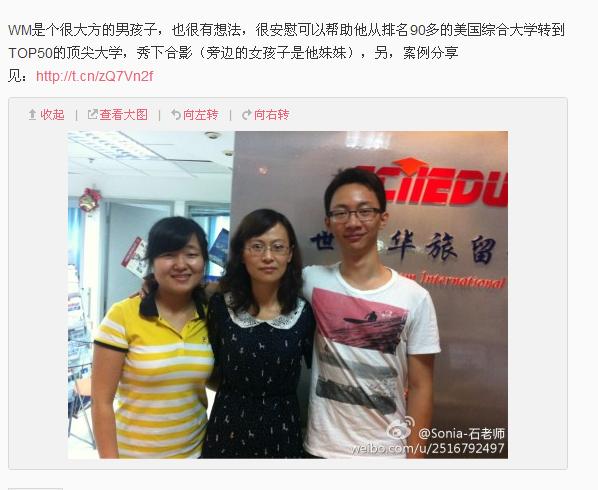 留学美国网石老师和WM同学,摘自石老师新浪微博。