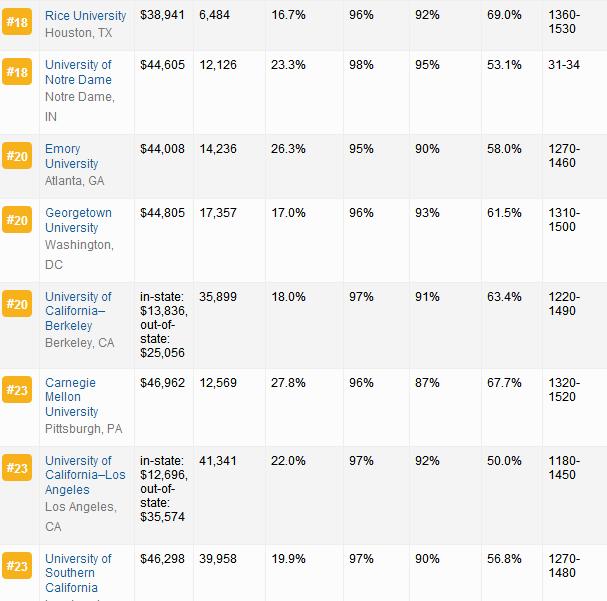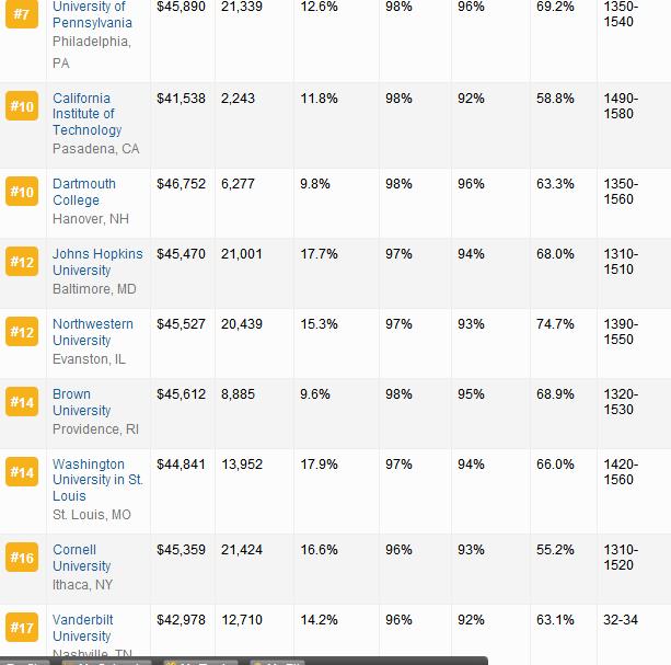 14年排名第十的加州理工大学,SAT的录取平均分却是摘得桂冠,1490-1580 ,普林斯顿的SAT录取分数段是1410--1590