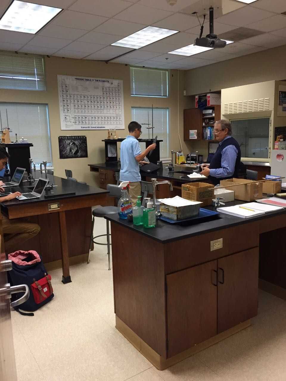 招生主任在陪同石老师参观过程中,我们遇到了学校的化学老师,在这所学校工作了四十年,给予了学校非常高的评价。