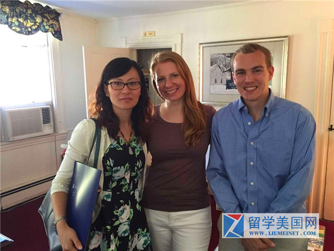 留美网石老师与学校招生主任(中)。招生老师在学校已工作8年,孩子也在这里读书。