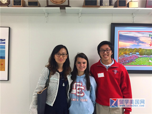 石老师到校后,校长、招生老师和学生们热情接待了我。与我合影的美国女孩今年毕业已被MIT录取,另一名男孩来自亚洲的越南。学校非常重视国际生。最值得提到的是,目前该校只有4名中国学生,我在校就遇到了两名。位上海女同学在数学竞赛中获奖;另一位是来自武汉的男同学,是从其他学校转过来到该校读书的,他们对学校学术和师资力量都非常的满意。