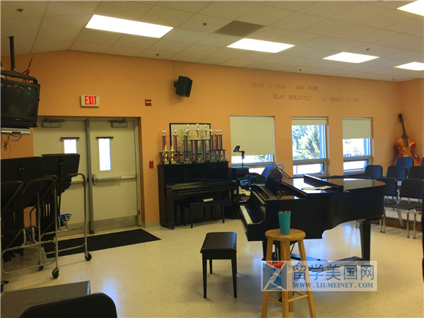 学校的音乐非常强,有三个钢琴琴房,学生们在音乐上获得了很多本州和全美的大奖。
