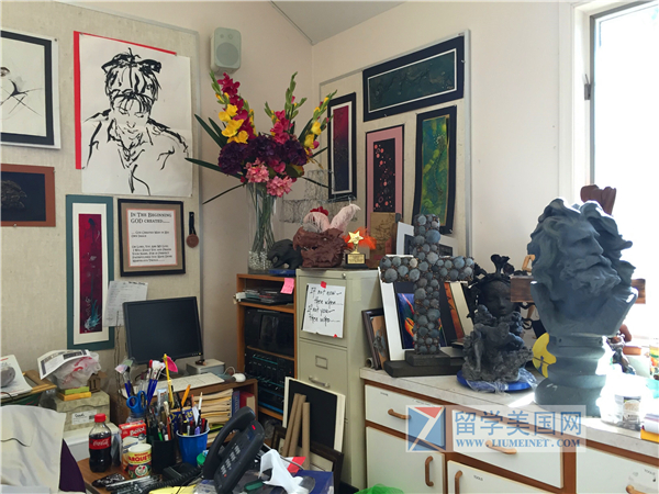 石老师很荣幸的参观了学校的艺术工作室,见到了80多岁老人仍然在工作,她帮助了很多学生申请到顶尖的艺术大学,有一所大学以她的名义授予了奖学金。同時,她还负责帮助学生制作学校戏剧演出的服装。