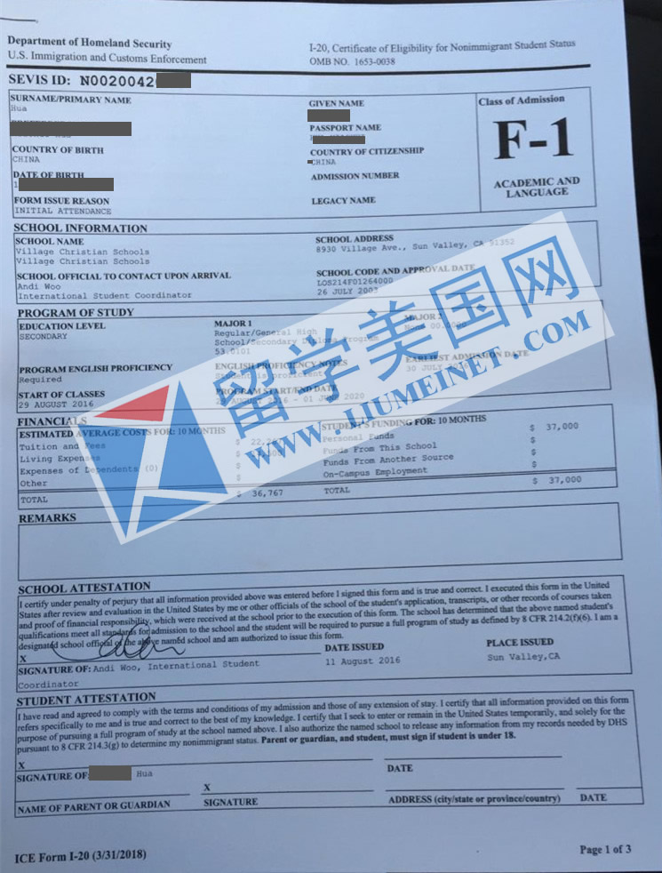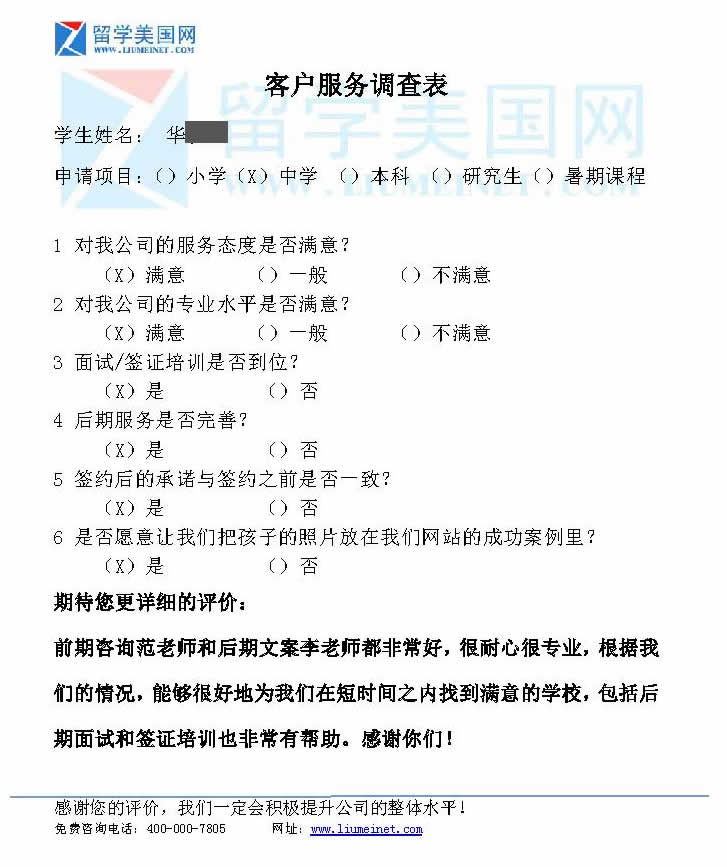 HXH同学的满意评价表和Village Christian School发的I20展示