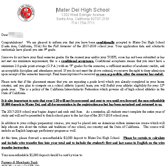 劣势:岳同学所在的国际学校是英国教育体制,用的是IB课程,难度很大,所以她的成绩偏低,另外标化成绩也都不理想。关键是她申请学校都是非常棒的学校,要求很高。申请难度系数五星。但是经过我们在文书,培训和申请过程各个细节的努力,终于帮她争取到了梅特德伊高中中学,费尔蒙特中学等学校的录取。