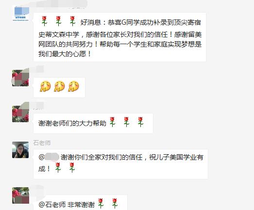学生录取后我们第一时间在群内公布,家长也是对我们工作非常认可,我们也会再接再厉,为每位孩子申请到满意学校。