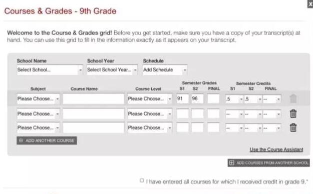 Courses & Grades: Many students are required to submit self-reported high school academic records when applying to some colleges and universities. With Courses & Grades, students will be able to fill out their self-reported transcript information as part of their Common Application. By integrating the Courses & Grades section into the Common App, those students who are already sending this information will be able to complete and submit it with their Common App, making the process of self-reporting transcripts more standardized and streamlined for students, counselors, and colleges.