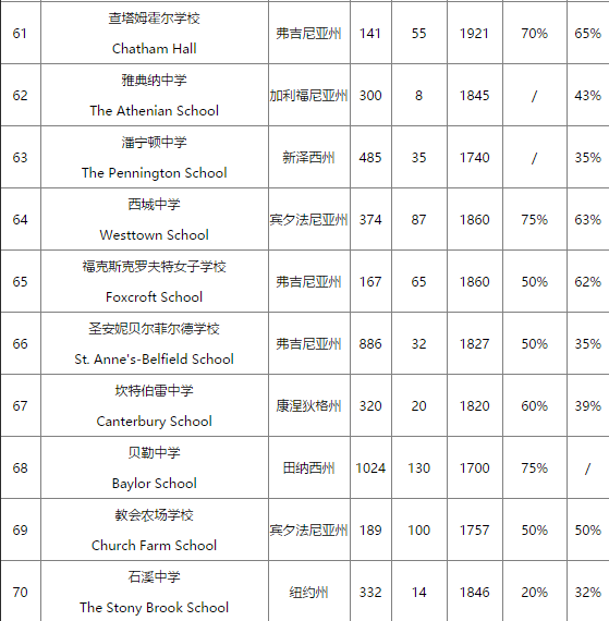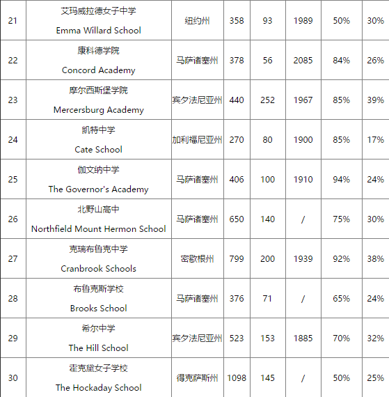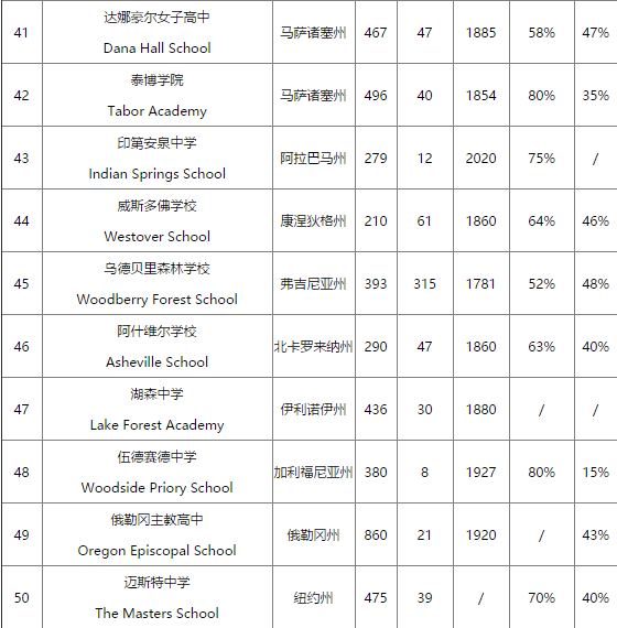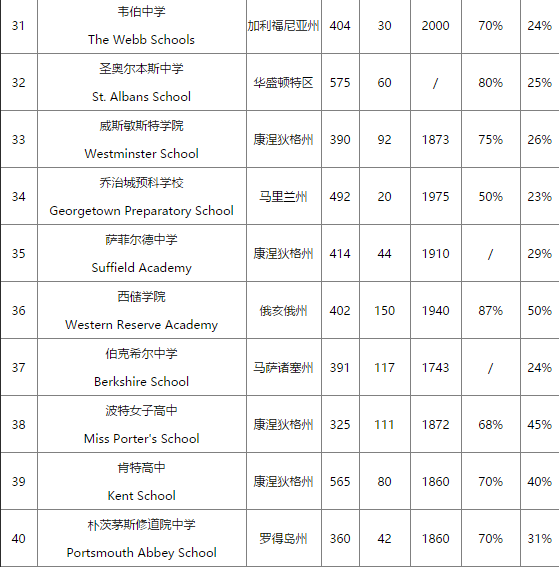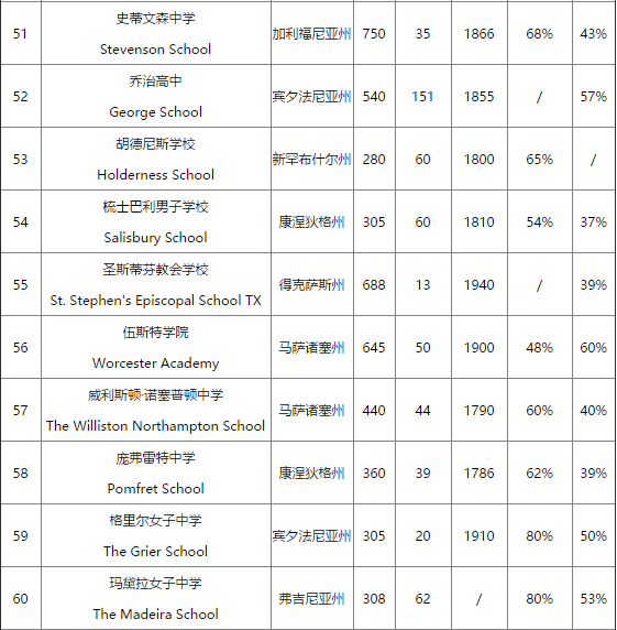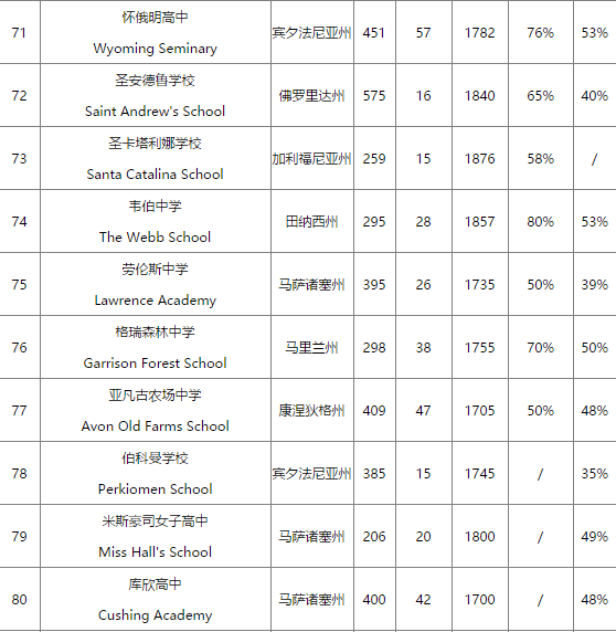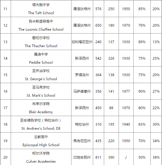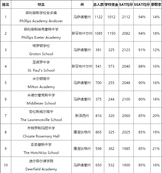 美国寄宿高中的排名
