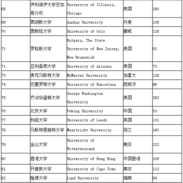 2017USNEWS社会学和公共卫生专业世界大学排名TOP100