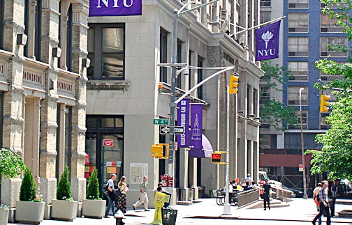 NYU始建于1831年,是美国最大的私立大学,也是美国唯一一座坐落于纽约心脏地带的名校,被列为美国新常春藤大学之一。该校任何一个科目都具有世界级水平,虽然所设课程压力不大,但要求甚高,学生称其“nothighpressure,butdemanding”。学校有超过46000位的学生,分别来自于美国50州及世界120个国家,而教授人数超过了5000位以上。基本上是以华盛顿广场为学校的心脏,向外做辐射状的分散,大部分的校舍集中于下城,但也因着学院的不同而遍及整个曼哈顿岛,继续教育学院则位于中城,只要触目所及插有紫色旗帜(素有「紫色联盟」之称),写着「NYU」或绘有火炬图案(纽约大学的校徽)即可辨认此一建筑为纽约大学所有。