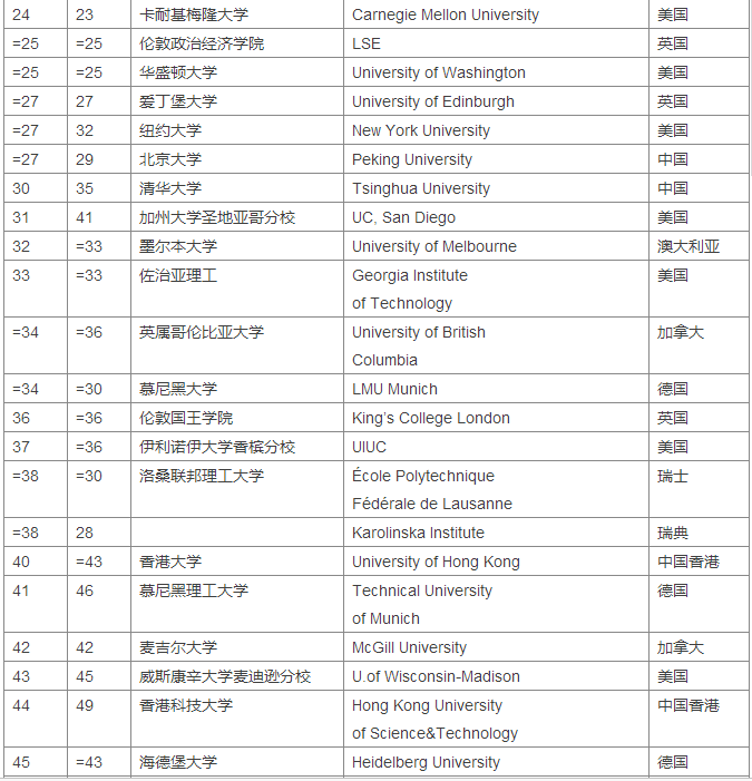 本次排名包含了来自77个国家和地区的1000所院校。其中,中国和韩国的高校在排名中进步明显。大陆高校表现不俗,七所学校进入榜单前200,北京大学和清华大学较上一年名次均有所提升。