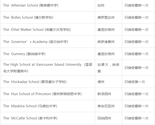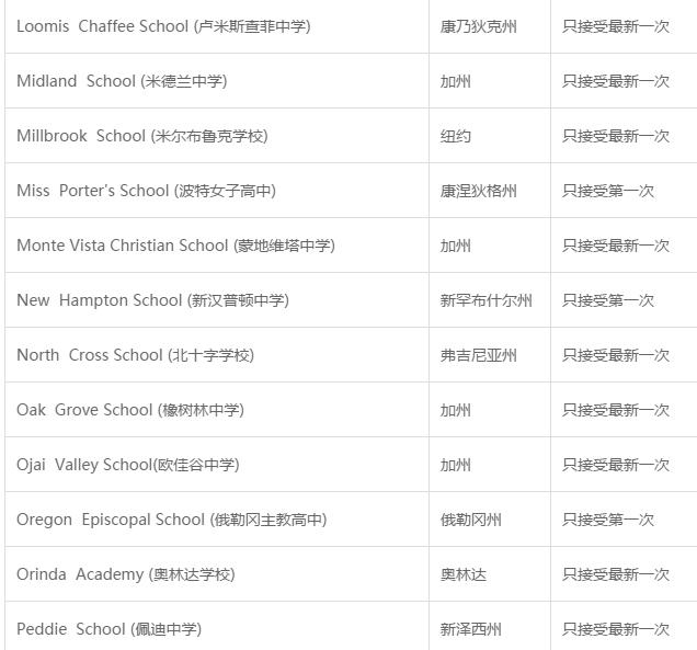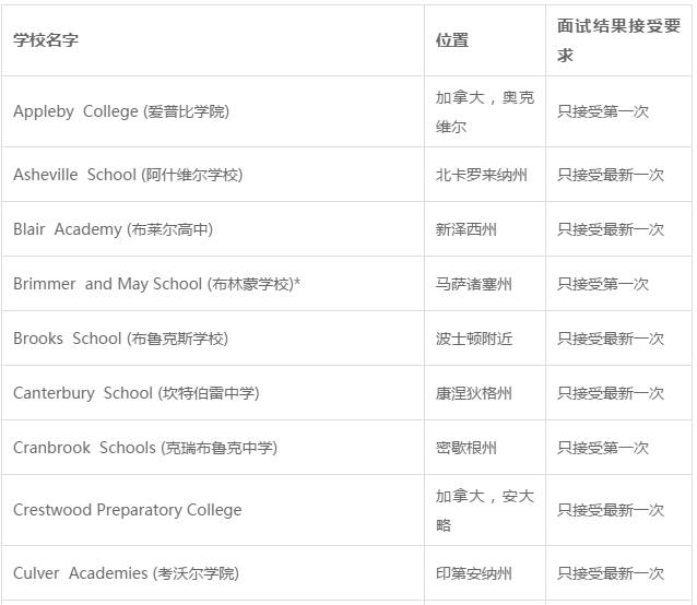 目前有90所美国高中要求必须提交维立克面试结果,并且有些只接受第一次的结果(每位考生最多可以参加三次,每两次至少间隔30天),只接受第一次维立克面试的美国高中,又新增了6所学校: