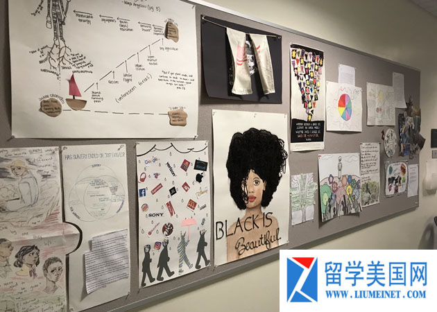 走廊上粘贴的都是学生自己创作的作品