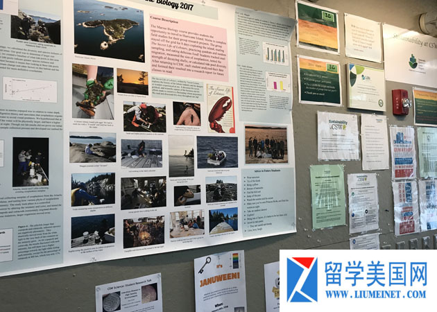 墙上粘贴的是一些学校的活动画报等,学生自己的创意