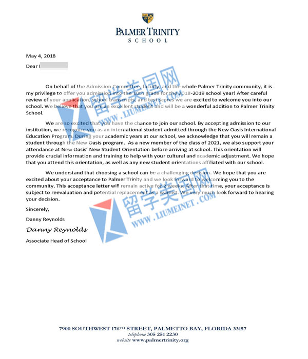 恭喜D同学成功补录到 Palmer Trinity School!补录阶段学校的名额都很紧张,接到D同学的Case后,留美网文案及其全体员工加班加点,最终帮D同学争取到了录取,在这里给D同学点赞!祝D同学在美国学业有成!前程似锦!美国高中补录热线:400-000-7805,010-65183908!
