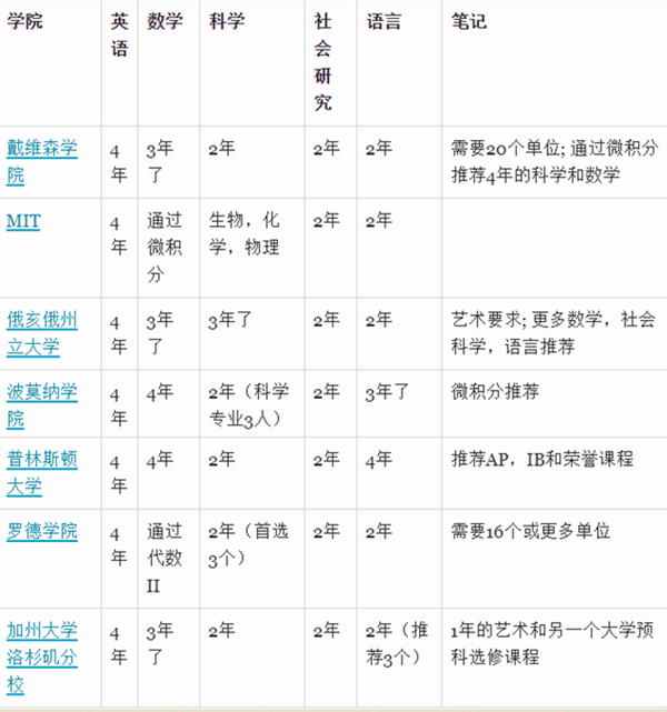各州的核心课程要求各不相同,许多更具选择性的学院希望看到一个 远远超出核心的强大高中学业成绩。在选择性最强的大学中,必须具备大学先修课程,IB和荣誉课程。在大多数情况下,高选择性大学的最强申请者将有四年的数学(包括微积分),四年的科学和四年的外语。