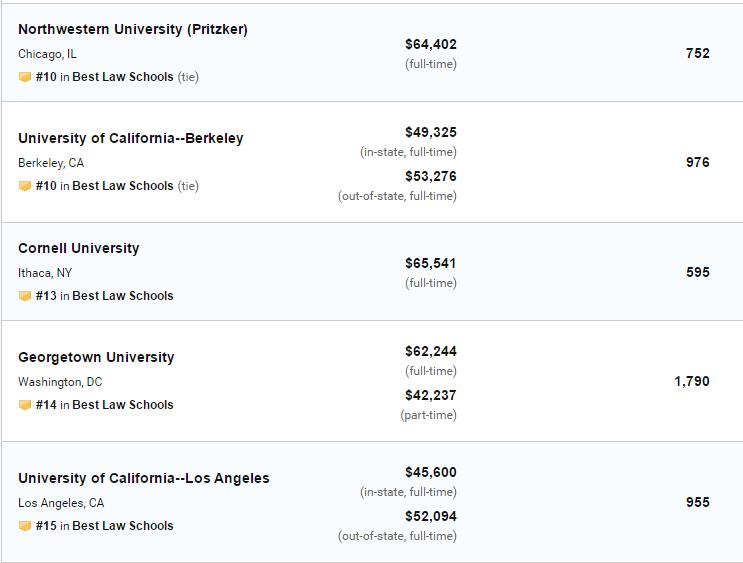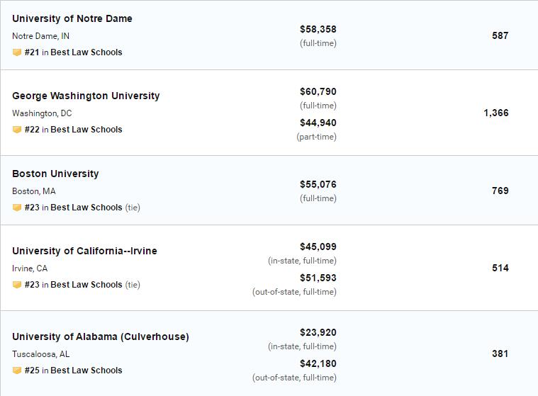 2020年US News美国大学法学院排名!