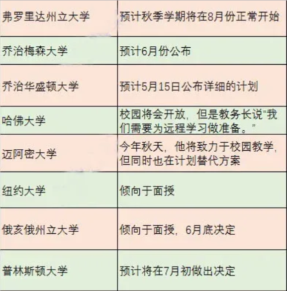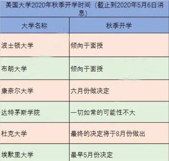 2020年秋季美国大学开学情况!