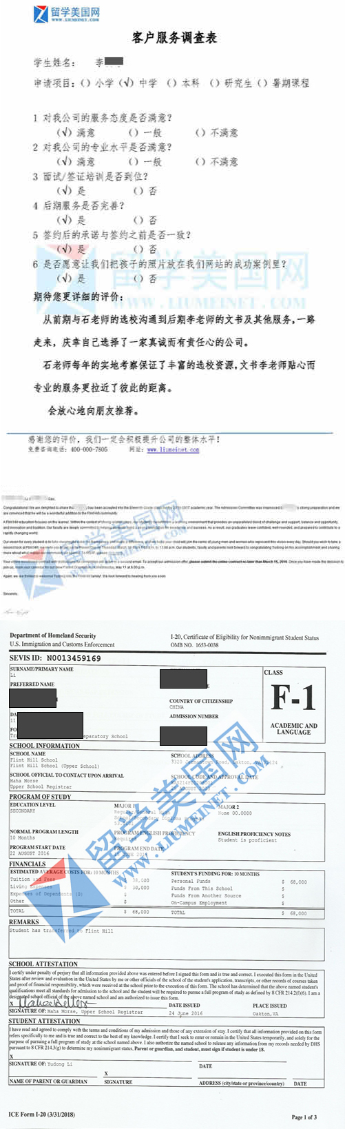 LYD同学的满意评价表和首府牛校弗林特山中学录取offer展示 【学校考察详情】