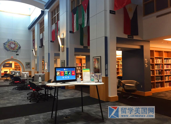 (学校图书馆,有现代化的图书管理系统)
