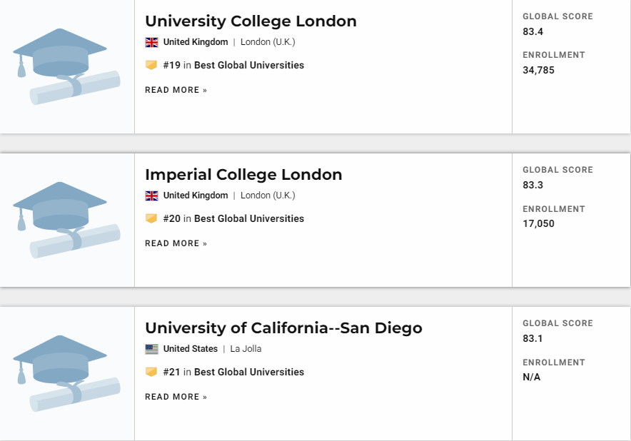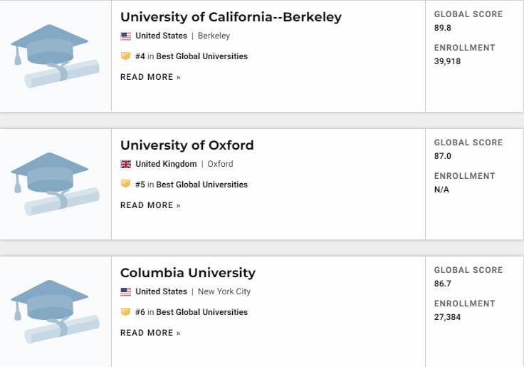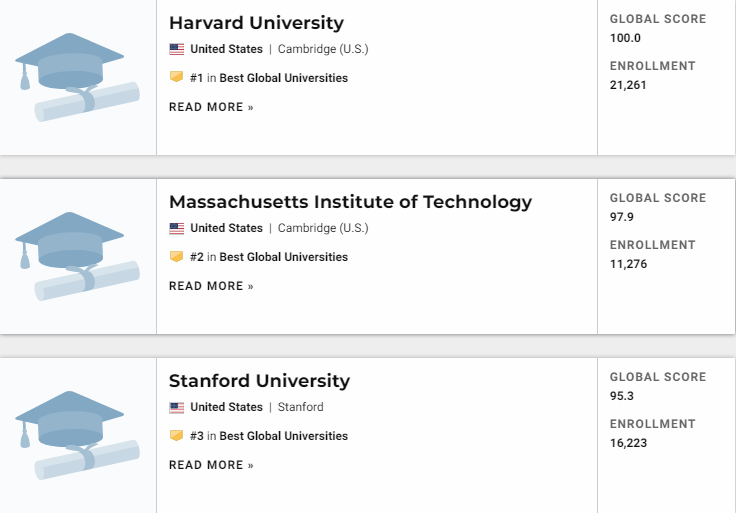 2021年USNews世界大学排名出炉!排名第一的是它!