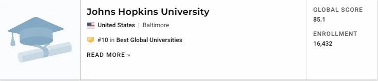 小编看了名单之后,发现约翰霍普金斯大学挤进前十名,而普林斯顿大学跌至11位,与耶鲁大学并列。清华大学跻身世界前30,位列28,北京大学则排名第51,上海交通大学世界排名122。