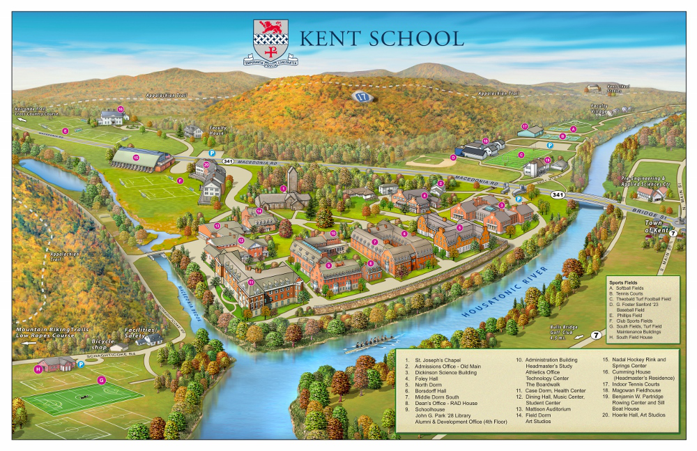 肯特高中(Kent School)创建于1906年,位于康涅狄格州,是一所男女合校的住宿中学,全校人数为565人,住宿生约500人,邻近HouSATonic河,占地1300英亩,以丰富的教学得名,除了提供学生进大学所需的挑战课程外,对艺术、体育及人格充分重视,侧重培养学生的全方位能力。