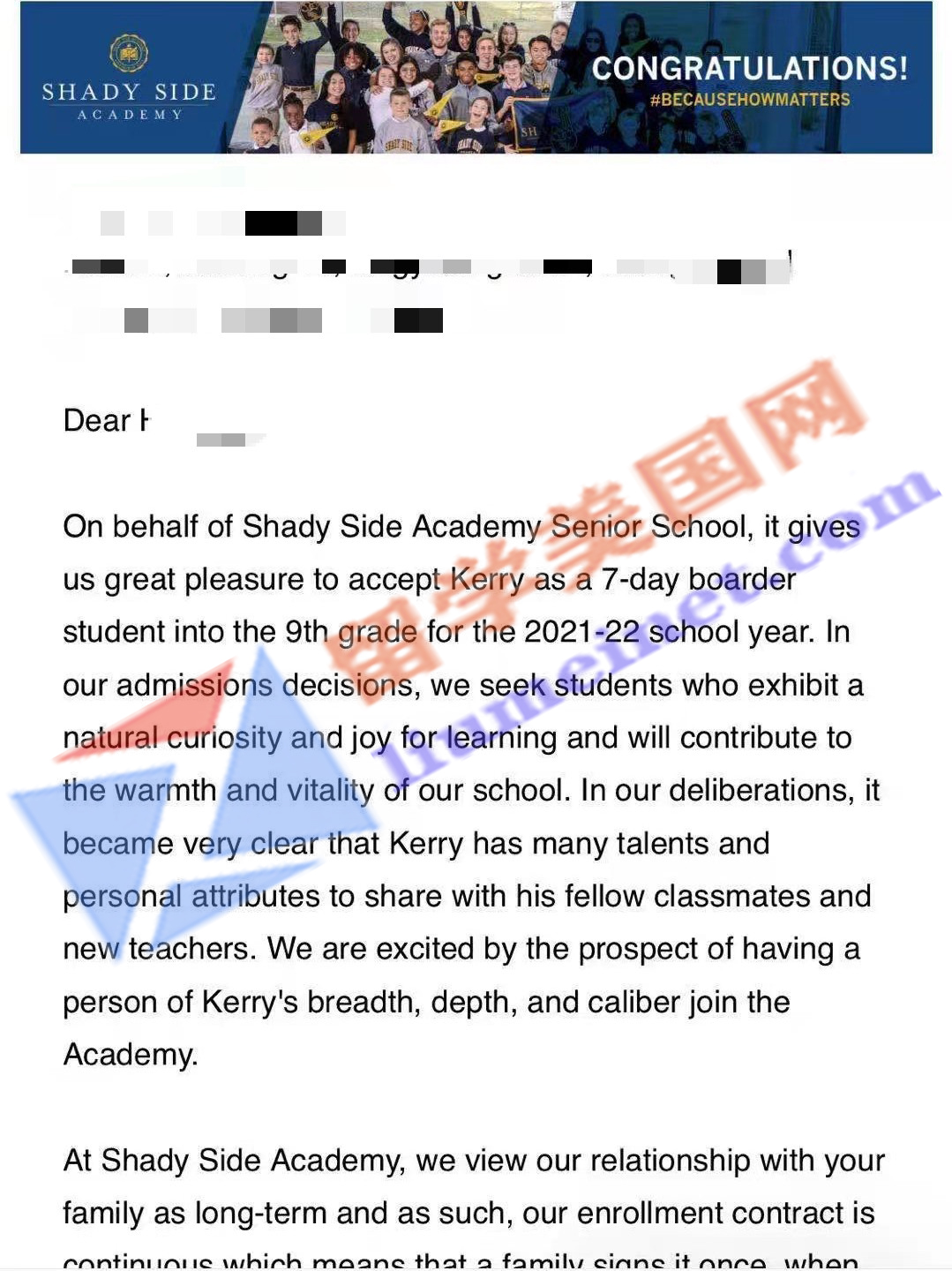 录取捷报 | 恭喜留美网S同学补录到美国顶尖寄宿中学桑迪赛德学院Shady Side Academy录取~