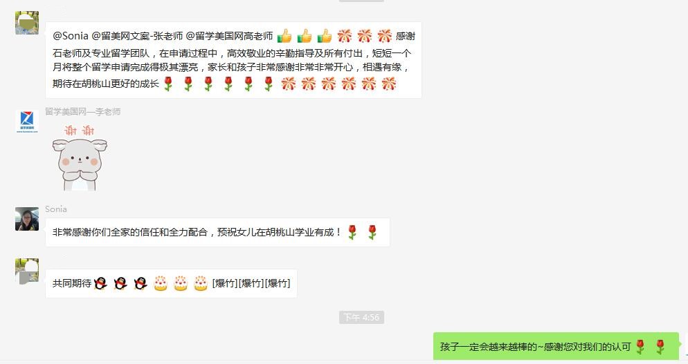 由于C同学没有标化成绩,所以在申请过程中文案老师也是着重突出孩子的优势,在C同学只选择一所梦校的情况下能录取到自己的梦校,离不开留美网老师和孩子以及家长的共同努力,再次恭喜留美网C同学!