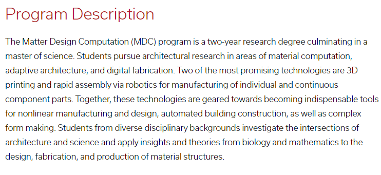 Matter Design Computation(M.S.)(Ithaca)