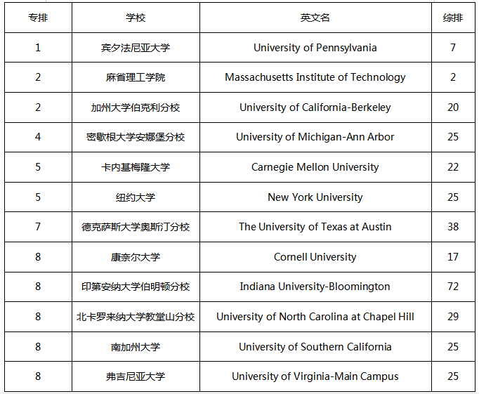 在此次排名中,宾夕法尼亚大学的商学院毋庸置疑的再次夺得第一,排名第二的是麻省理工的斯隆商学院和加州大学伯克利分校的商学院。