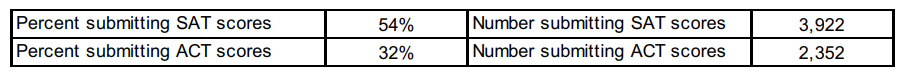 上图中的数据显示,有54%的申请者提交了SAT分数,32%的申请者提交了ACT分数。