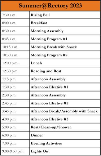 瑞克特瑞中学长日程安排提供了个人选择的追求和集体活动的平衡。每一天开始时,整个小组聚集在一起庆祝同龄人,展示才华,并与同学建立持久的关系。从那时起,事情只会变得更好,因为学生们在早上追求感兴趣的话题,下午享受一点休息,并充分利用我们的许多活动广阔的校园。然后,我们像开始时一样结束——整个团队聚集在一起,度过一个愉快的夜晚。