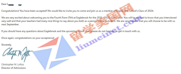 恭喜留美网Oliver同学被顶尖美初鹰溪中学Eaglebrook School录取!